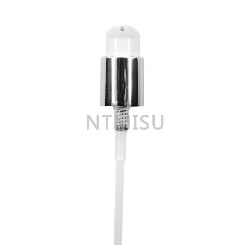 | اسم | 18 415 مضخة مصل ألومنيوم فضية لامعة مع زجاجة زجاجية |